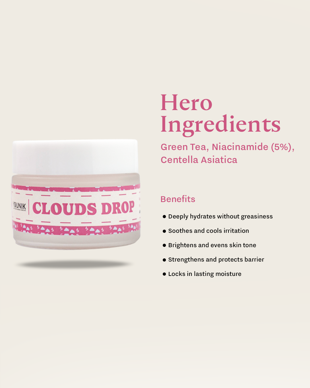 Meet your skin’s daily cloud of hydration—YOUNIK Clouds Drop, a watermelon-powered oil-free moisturizer designed for Indian skin. Its lightweight, non-greasy formula sinks instantly, quenching thirsty skin while balancing oil production. Enriched with watermelon extract, hyaluronic acid, and niacinamide, it hydrates, brightens, and protects without clogging pores. Perfect for oily, combination, and sensitive skin types.